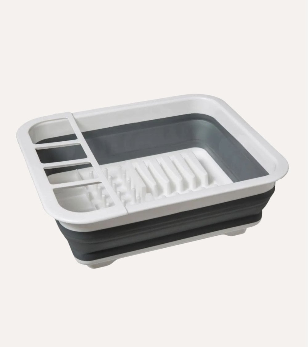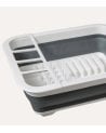 Materiales Duraderos: Fabricado con una combinación de plástico resistente, el escurridor cuenta con un marco exterior duro y un interior más flexible que facilita su almacenamiento y manejo. La combinación de colores blanco y gris oscuro le da un toque contemporáneo que complementa cualquier decoración.