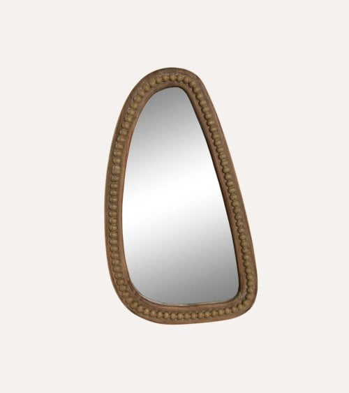 El Espejo Abstracto de Madera es una pieza única que aportará un toque de elegancia y sofisticación a cualquier espacio. Este espejo no es solo un objeto funcional, sino también una obra de arte que atraerá todas las miradas. Su diseño abstracto y su marco de madera decorado con bolitas de madera lo convierten en una pieza de decoración excepcional.