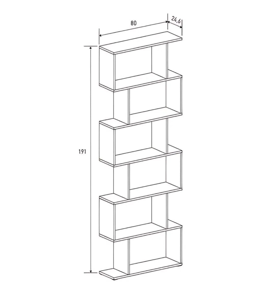 Con unas dimensiones de 80 x 24.6 x 191 cm, esta estantería es ideal para aprovechar espacios verticales sin ocupar demasiado lugar, perfecta para colocar libros, plantas o elementos decorativos que personalicen tu entorno.