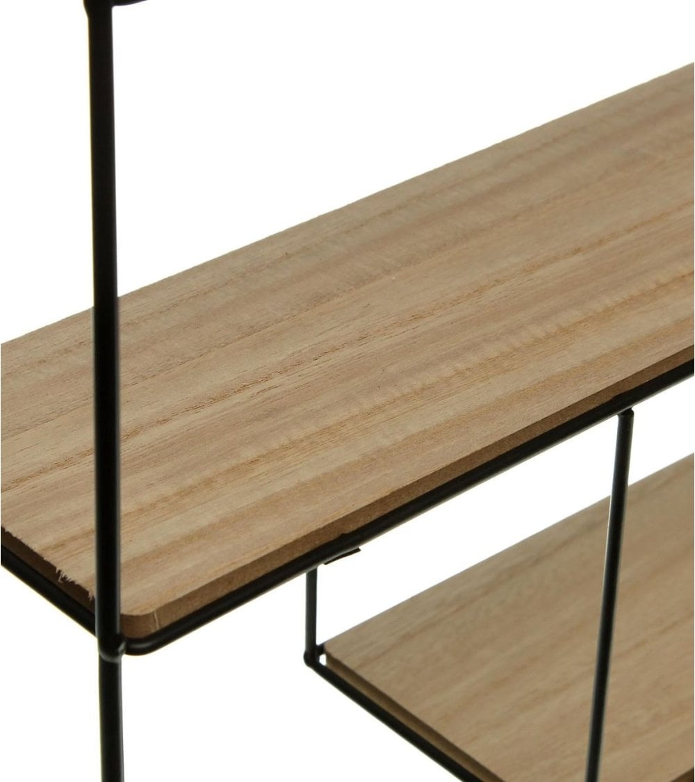 Estantería tipo mural con una estructura rectangular elaborada en metal negro y baldas de madera natural.