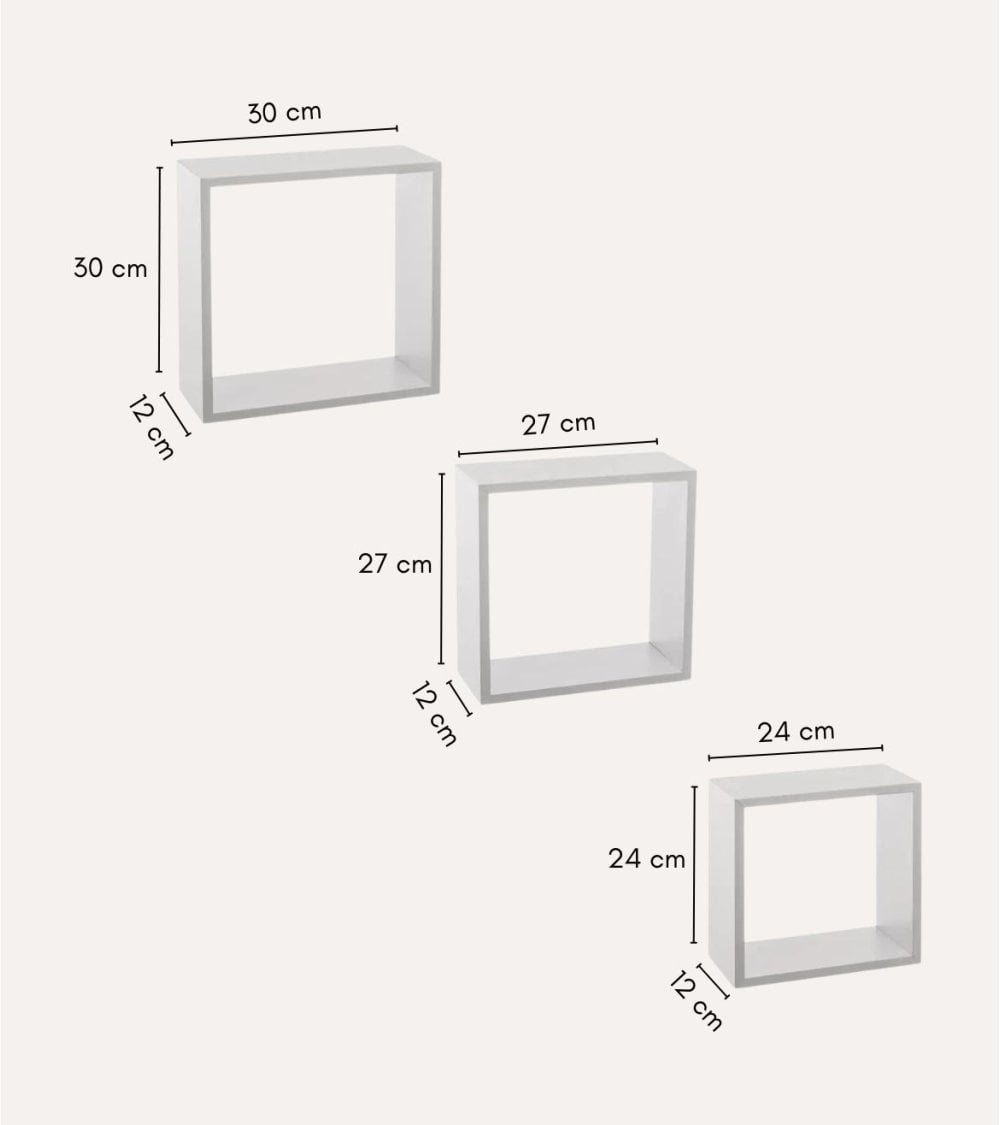 Set de 3 Estantes Cubos Fixy para Pared de MDF