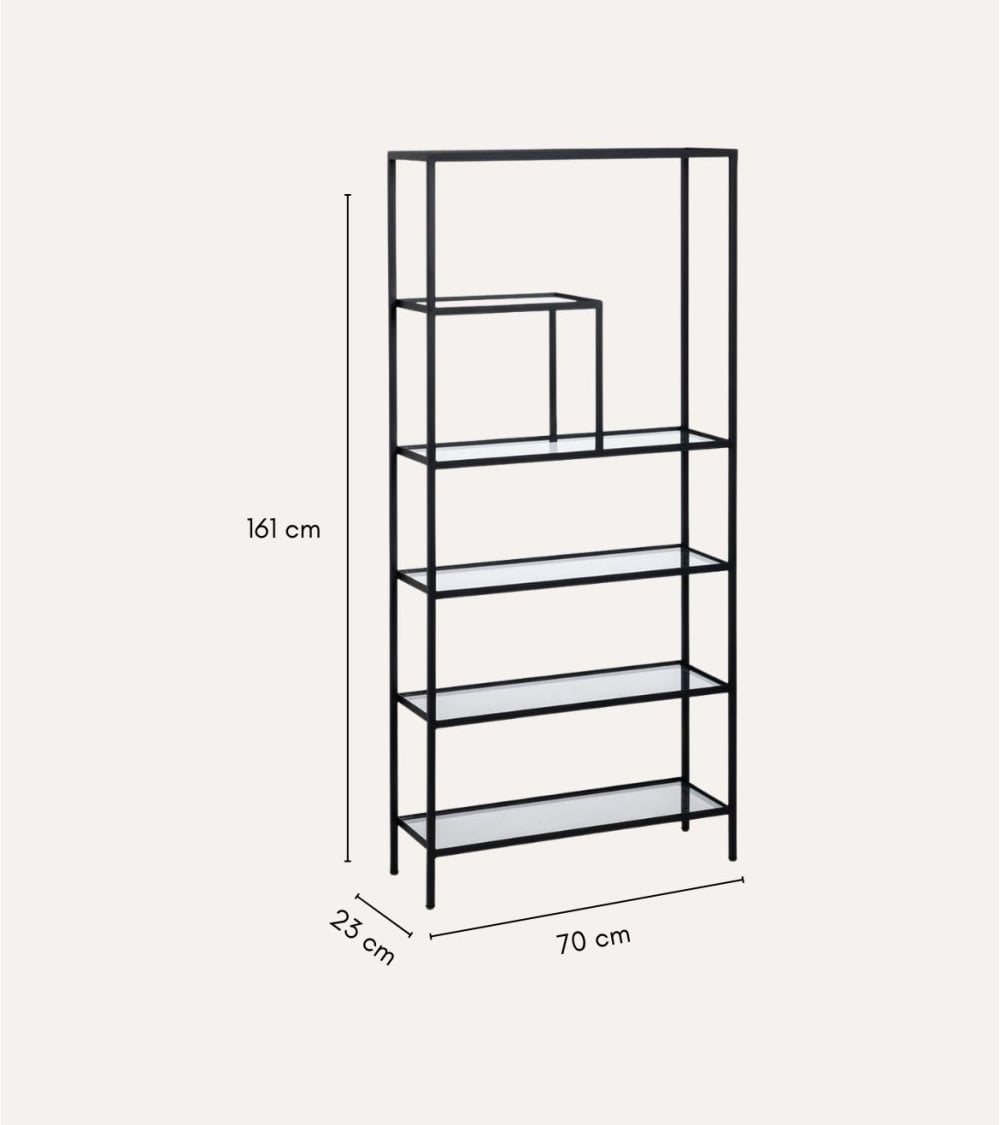 Estantería Asimétrica con 5 Niveles de Hierro y Cristal