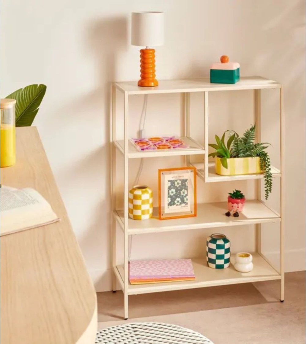 Su estructura metálica crea una sensación de ligereza visual, mientras que los 5 niveles proporcionan diferentes alturas para colocar objetos grandes y pequeños con facilidad. Gracias a su estilo limpio, esta estantería se integra a la perfección en salones contemporáneos, despachos, comercios o incluso cocinas de diseño, aportando orden y elegancia sin recargar el ambiente.