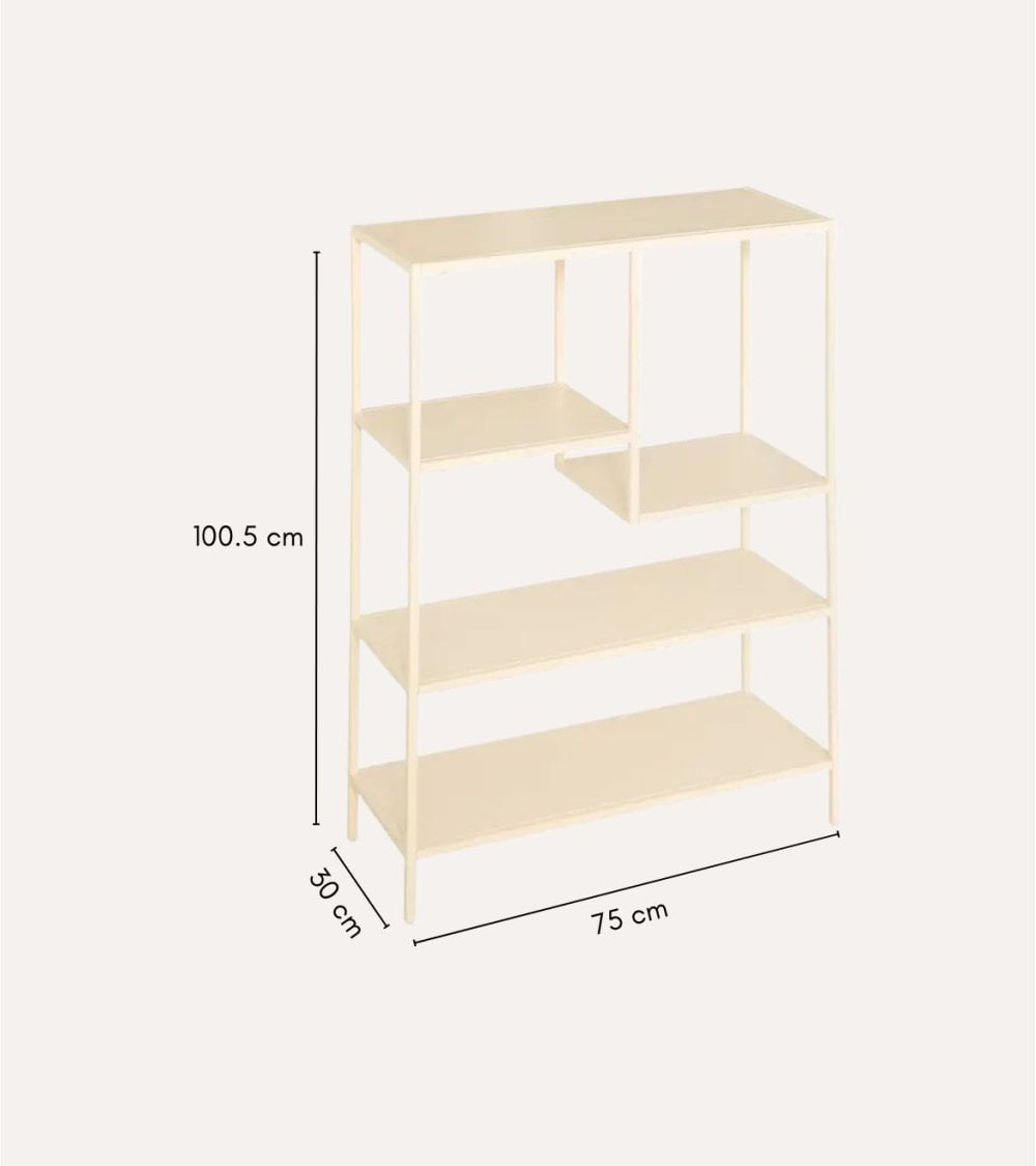 Con unas medidas de 75 x 30 x 100,5 cm, la estantería ofrece suficiente superficie de apoyo sin ocupar demasiado espacio, lo que la hace especialmente adecuada para viviendas modernas o espacios reducidos que necesitan soluciones inteligentes de almacenamiento. Su formato bajo permite colocarla bajo ventanas, televisores anclados a la pared o cuadros, aprovechando al máximo cada rincón.