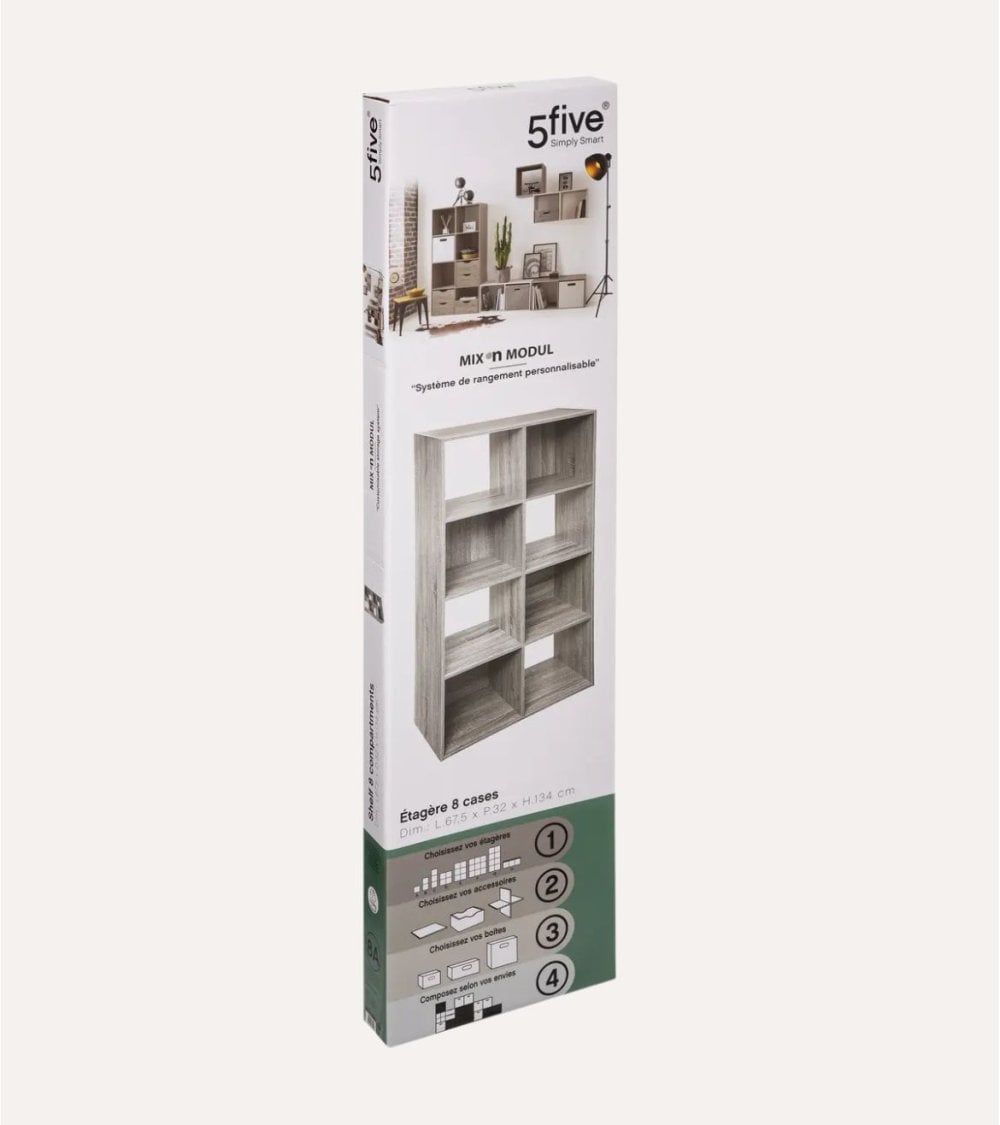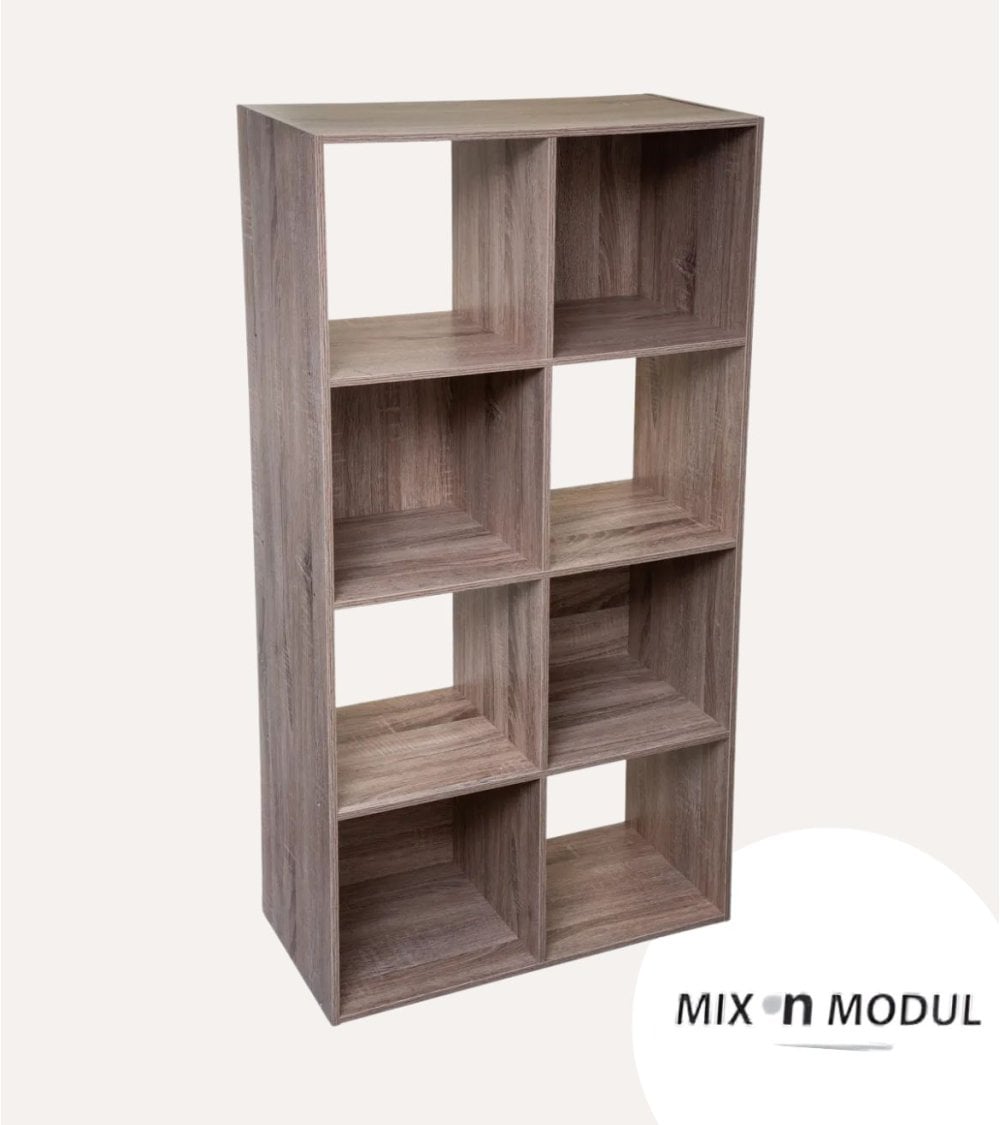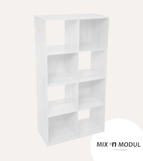 La estantería Mix n'modul de 8 módulos es ideal para organizar tus espacios. Con 8 compartimientos, 4 con fondo y 4 sin fondo, es perfecta para cualquier habitación, aportando estilo y practicidad a tu hogar. Sus medidas son 67,5 x 32 x134 cm y está disponible en blanco, natural y gris.