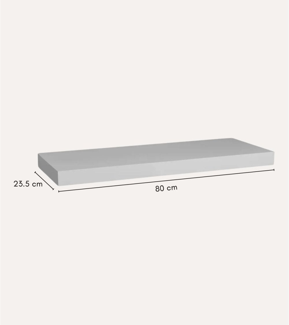 El Estante Flotante Fixy para Pared es ideal para exhibir libros, plantas decorativas o fotos familiares. Disponible en dos tamaños, 60 cm (60 x 23.5 cm x 3.8 cm) y 80 cm (80 x 23.5 x 3.8 cm), se adapta a cualquier espacio. Elige entre colores Blanco, Negro, Gris o Roble para combinar con tu decoración. Fabricado con MDF de alta calidad, presenta una textura suave y un patrón de grano sutil que imita la madera natural.