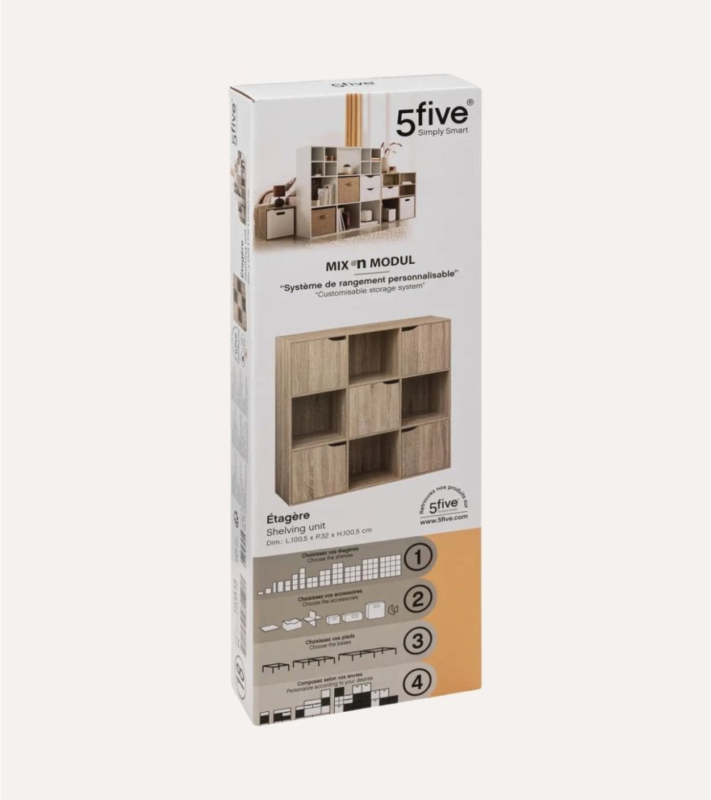 La estantería Mix n'modul de 9 módulos con puertas es perfecta para cualquier rincón de tu hogar gracias a sus medidas de 100,5 x 32 x 100,5 cm. Disponible en color natural, se adapta a cualquier estilo de decoración. Con 5 compartimientos con puertas, ofrece un almacenamiento práctico y estético.
