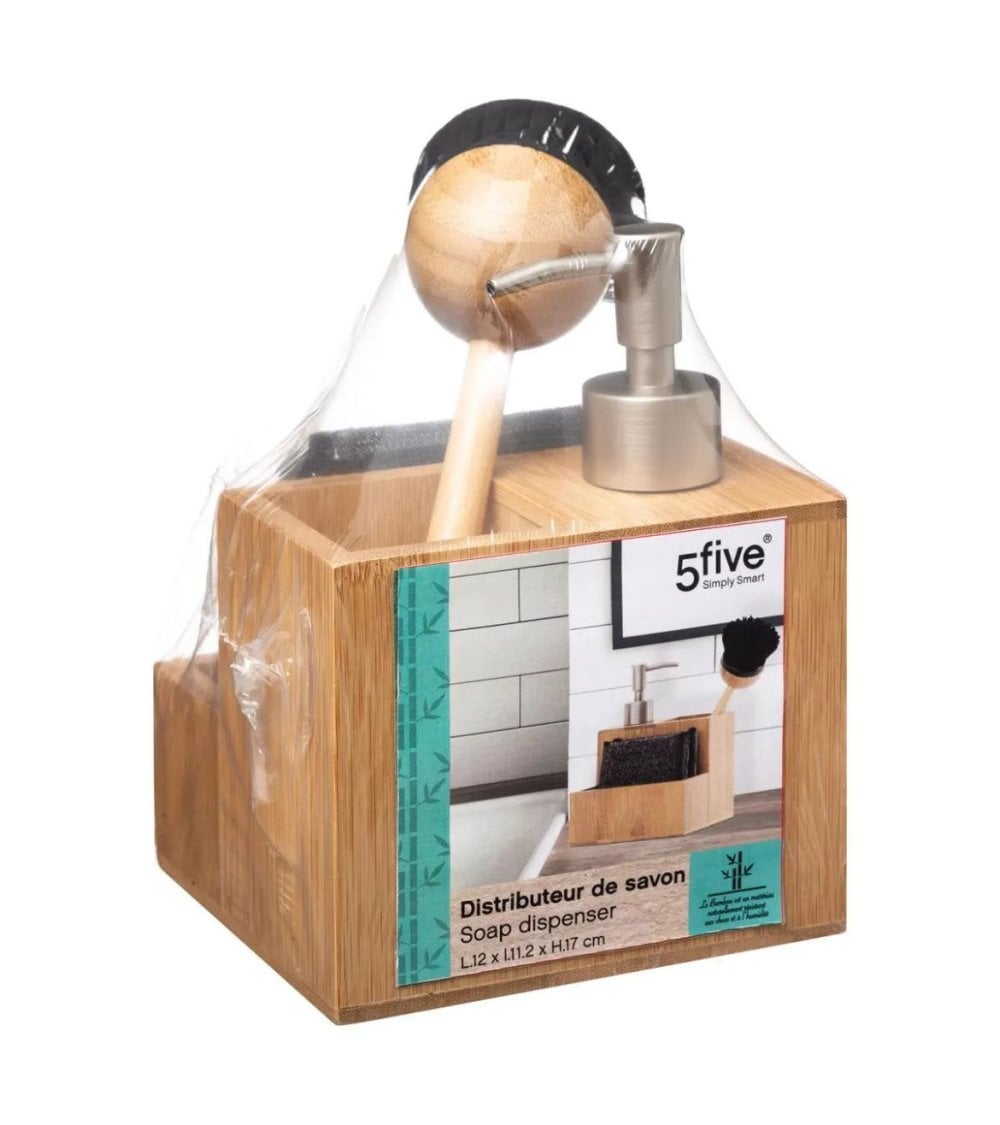 Este dispensador de jabón y accesorios de bambú es perfecto para cualquier baño. Con una capacidad para jabón de 250 ml, es práctico y funcional. Sus medidas son 13,5 x 12,4 x 17,5 cm, lo que lo hace compacto y fácil de colocar. Además, incluye un cepillo de 6,5 x 7 x 23 cm y una esponja de 10 x 2 x 9 cm. Todo lo que necesitas para mantener tu baño limpio y ordenado.
