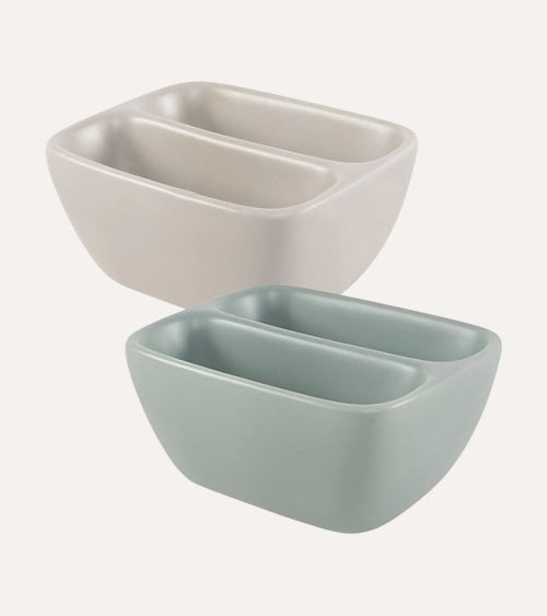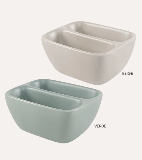 El Estropajero Doble de Cerámica para Cocina es fácil de limpiar y mantener, lo que lo convierte en una opción práctica para cualquier cocina. Disponible en colores beige y verde, puedes elegir el que mejor se adapte a la decoración de tu cocina. Con sus medidas de 13.5 x 10.5 x 6 cm, este estropajero de cerámica es compacto y no ocupa mucho espacio, lo que te permite maximizar el espacio de tu cocina.