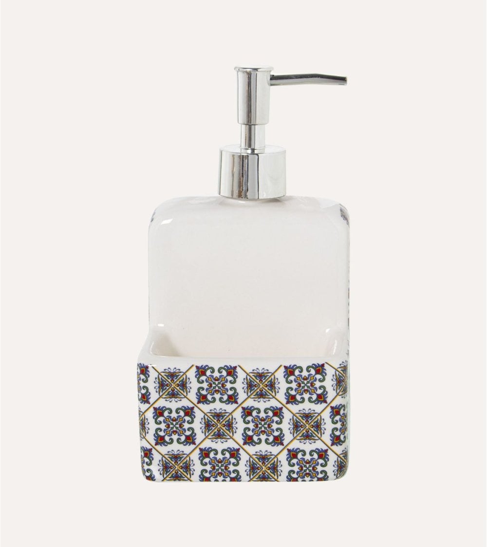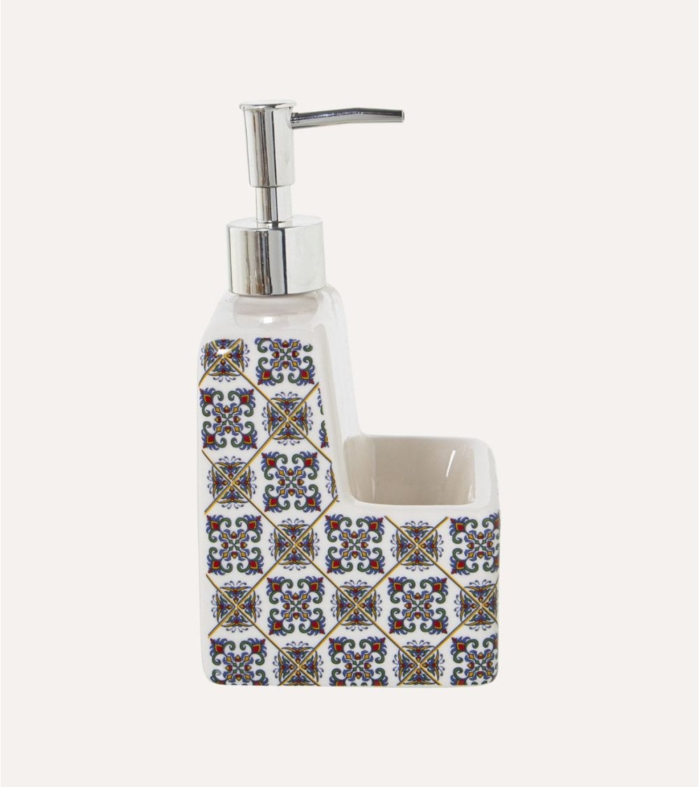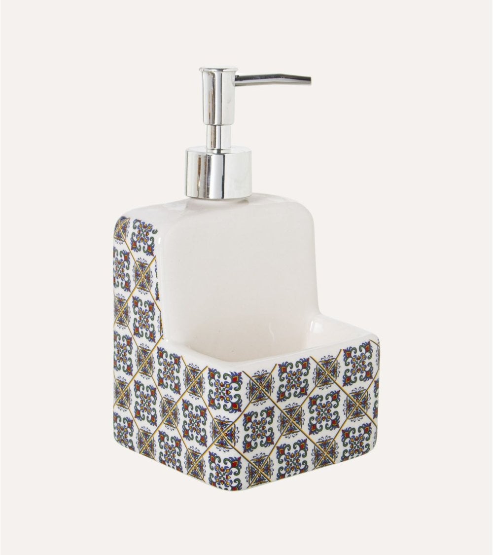 El Dispensador de Jabón Lisboa con Estropajero es una pieza esencial para tu hogar. Hecho de cerámica de alta calidad, su diseño de azulejos evoca la belleza de la ciudad de Lisboa. Disponible en dos modelos, puedes elegir entre azulejos multicolor o azulejos azules y blancos. Con medidas de 11 x 10 x 19 cm, es el tamaño perfecto para cualquier baño o cocina.