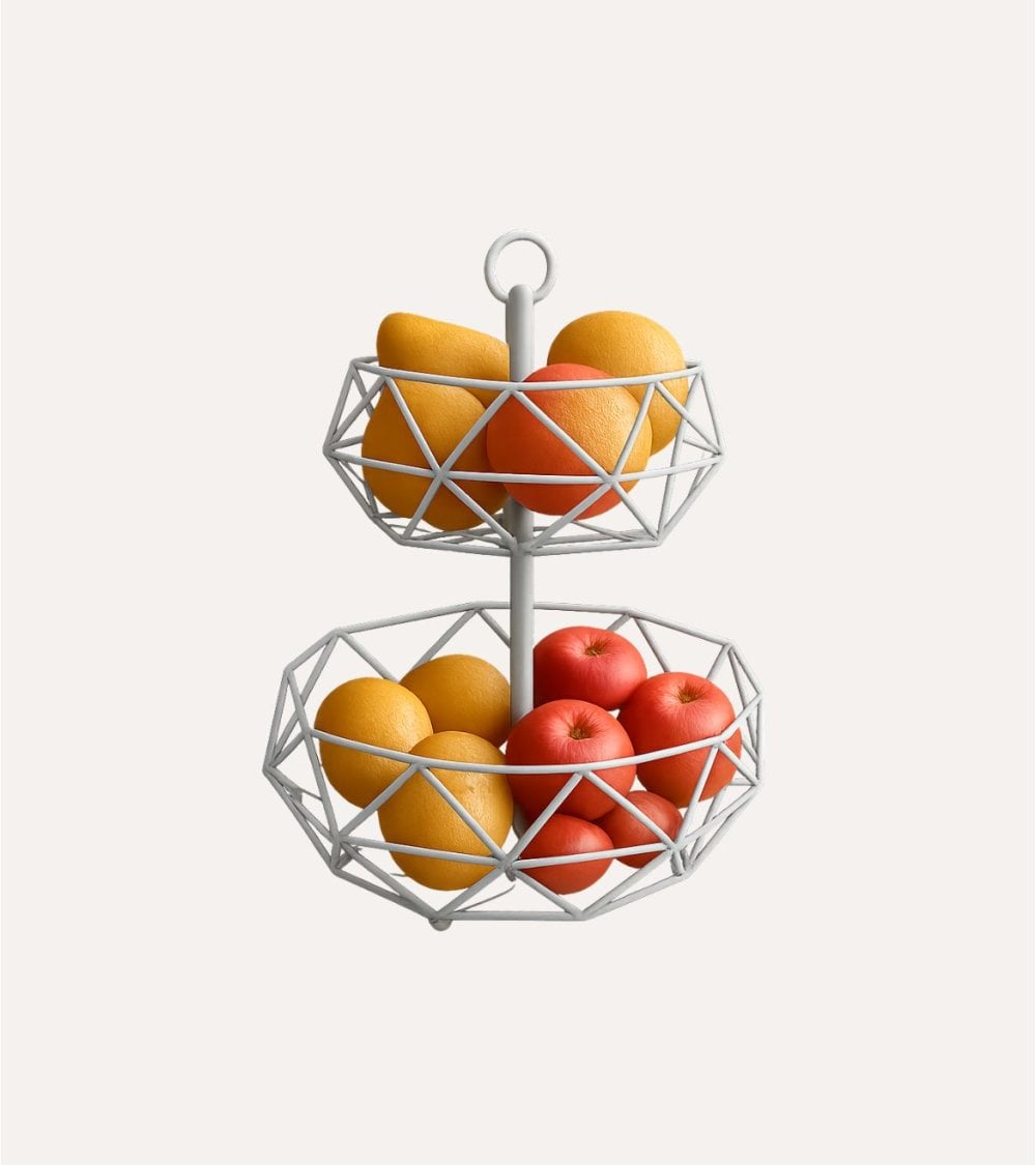 - Diseño funcional: dos alturas permiten organizar mejor las frutas manteniéndolas visibles y accesibles.