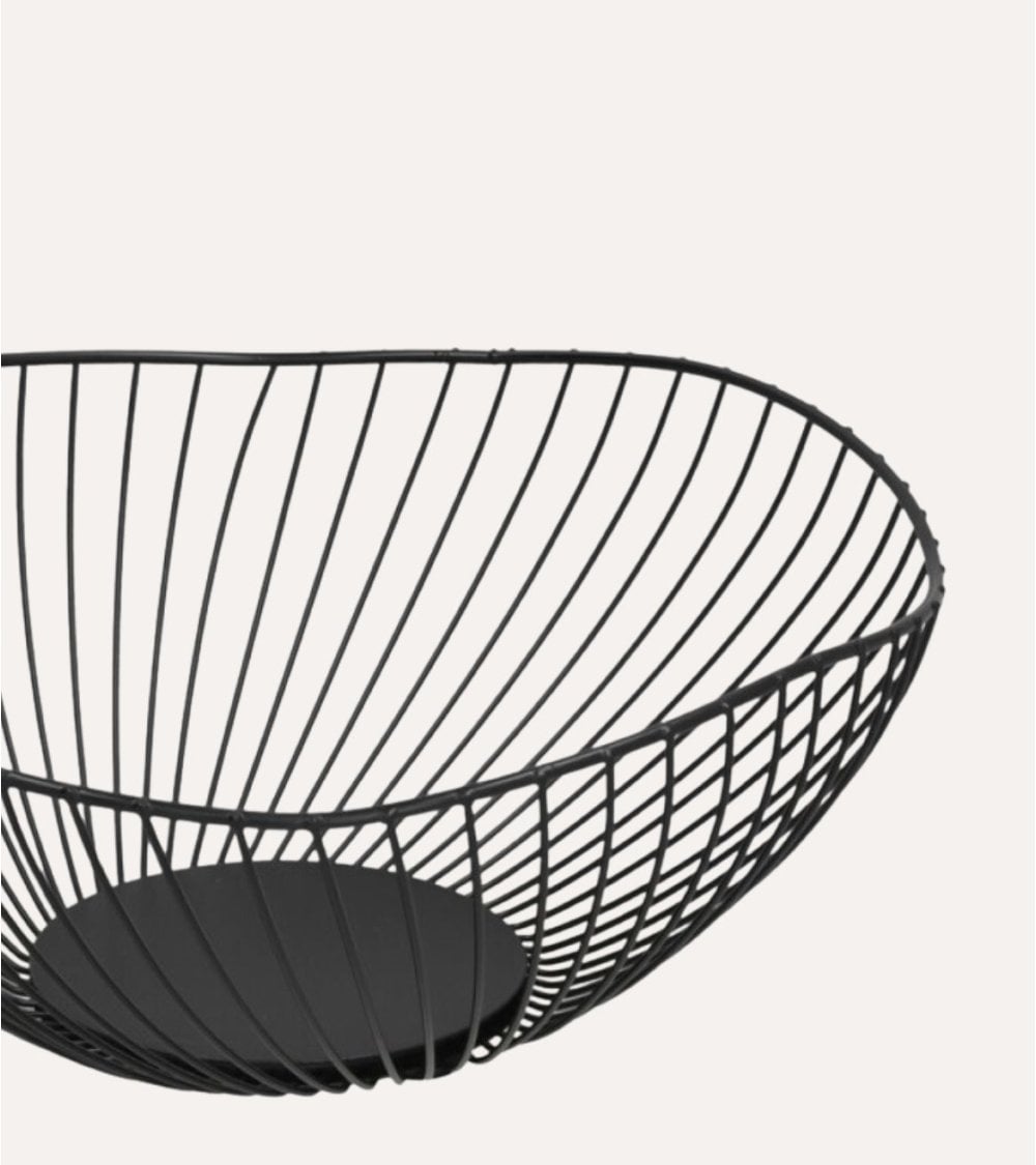 Fabricado en metal resistente, este frutero ofrece una estructura ligera pero robusta, garantizando durabilidad y estabilidad. Su acabado en un profundo color negro mate no solo aporta un toque de elegancia, sino que también facilita su limpieza y mantenimiento diario. La disposición de los alambres metálicos en un patrón cruzado permite una excelente circulación del aire, manteniendo tus frutas frescas por más tiempo.