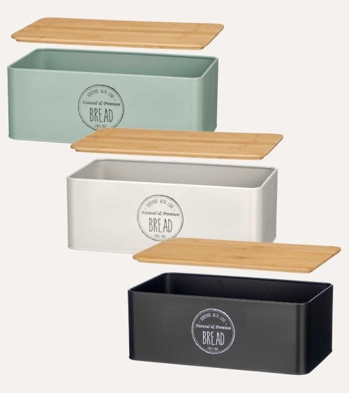 La Panera Homemade de Acero y con Tapa de Bambú es un accesorio imprescindible para tu cocina. Con dimensiones de 18 x 33 x 13 cm, es perfecta para almacenar tu pan fresco. Su diseño elegante está disponible en verde, negro y blanco, lo que permite que se adapte a cualquier decoración.