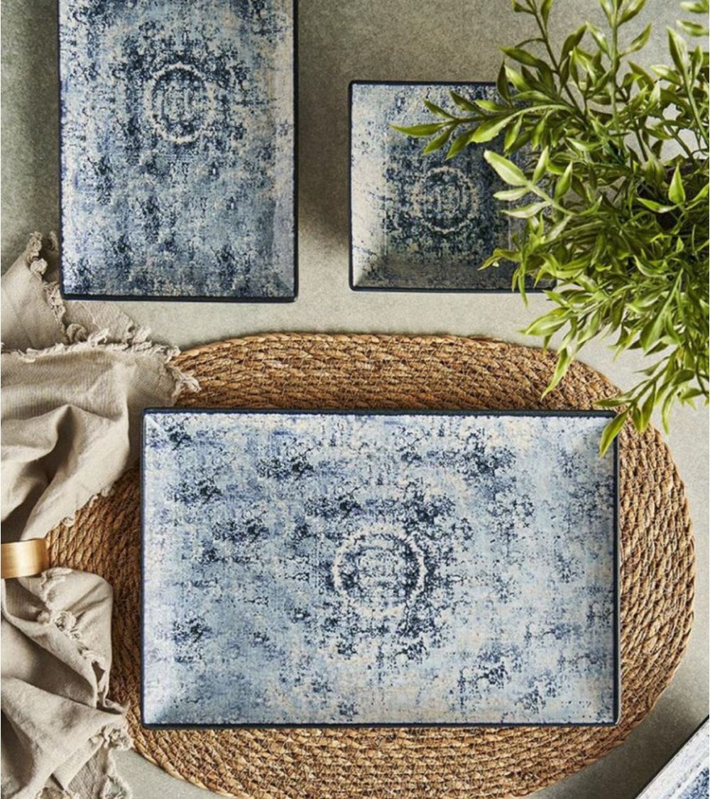 Descubre la Fuente Rectangular Electra de la marca La Mediterránea. Con un diseño de pinceladas abstractas en tonos azules, esta pieza aporta un toque de estilo Mediterráneo a tu mesa, perfecto para el verano. Hecha de gres de alta calidad, forma parte de la colección Electra. Ideal para realzar tus comidas y cenas. Disponible en varios tamaños.