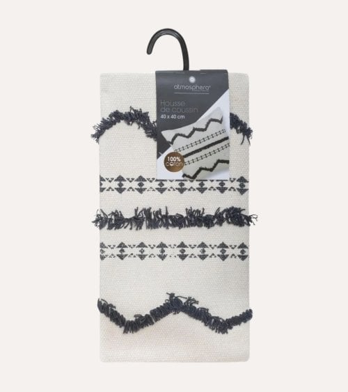 En ALI Hogar, te presentamos la Funda de Cojín Etnik de Algodón, una pieza imprescindible para darle un toque moderno y bohemio a cualquier espacio. Esta funda combina un diseño elegante con la comodidad y durabilidad que solo el algodón puede ofrecer. Su base en tonos crema o blanco roto crea un lienzo neutro perfecto para resaltar los patrones geométricos en gris oscuro o negro, que aportan carácter y estilo a tu decoración.
