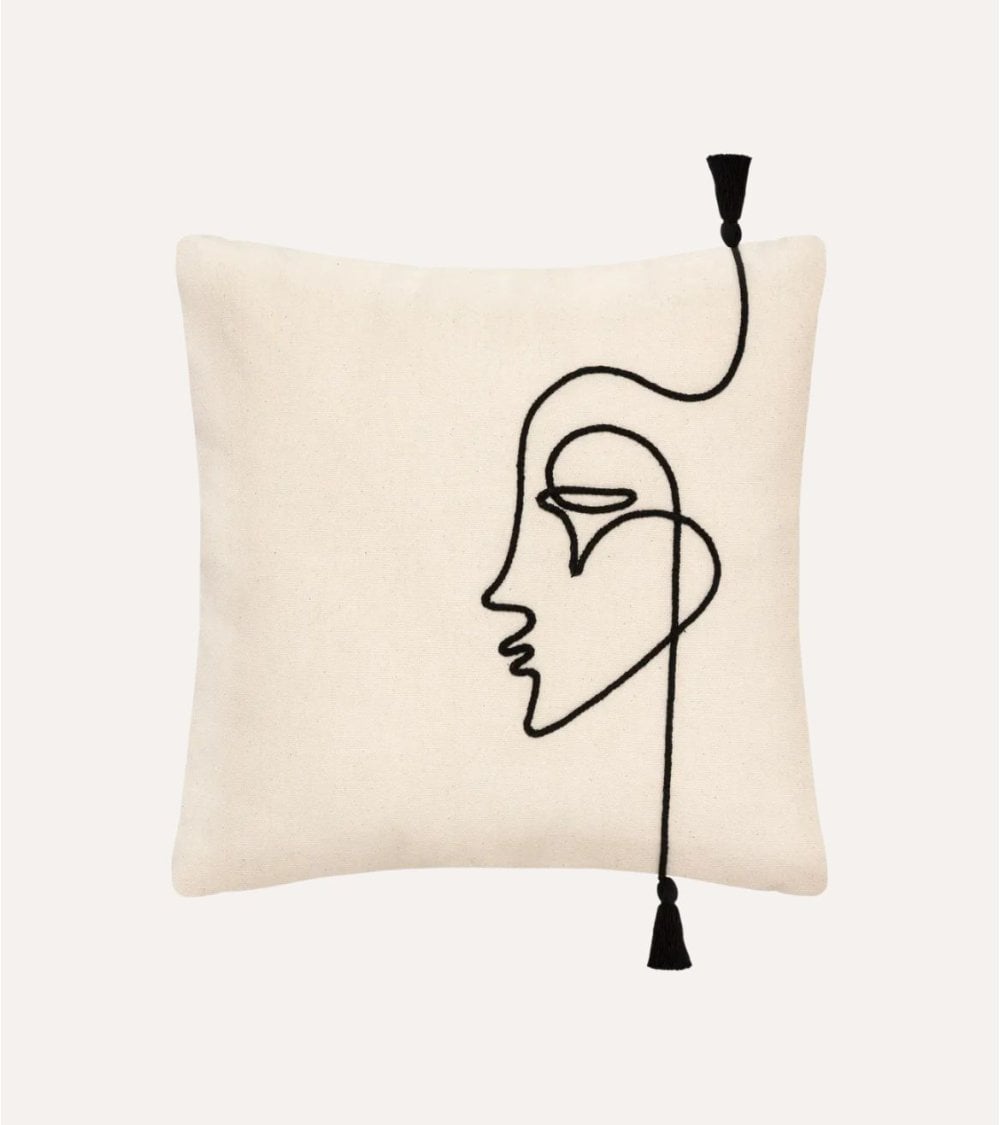 La Funda de Cojín Visage de Algodón es una adición elegante y sofisticada a cualquier hogar. Con un diseño único de cara abstracta bordada, este cojín no solo proporciona comodidad, sino que también añade un toque de arte y modernidad a cualquier espacio. El patrón de cuerdas y los pompones añaden un detalle divertido y chic, mientras que la espalda estampada complementa el diseño, creando un equilibrio perfecto de estilo y confort.