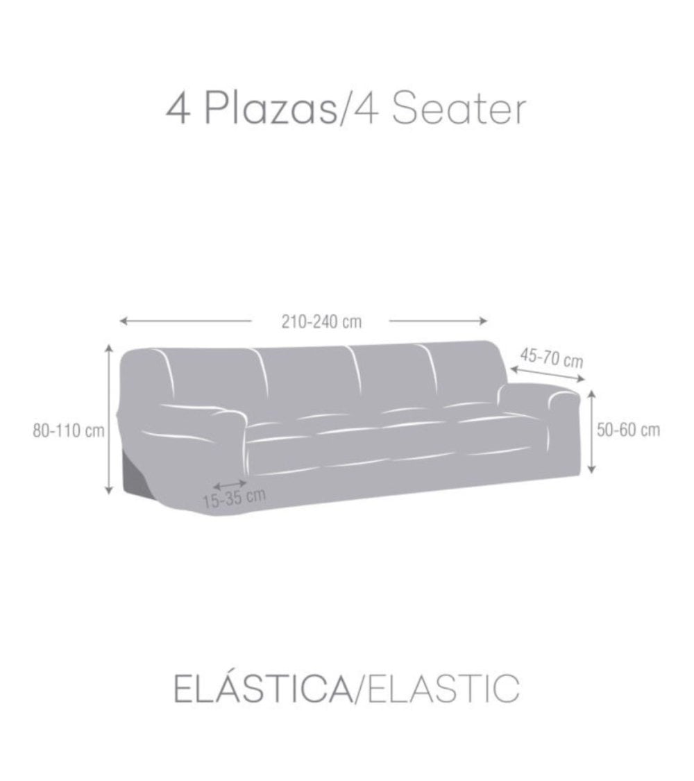 La Funda de Sofá Ulises Elástica es perfecta para proteger y renovar tu sofá. Disponible para 1 Plaza (110 x 70 x 110 cm), 2 Plazas (170 x 70 x 110 cm), 3 Plazas (210 x 70 x 110 cm) y 4 Plazas (240 x 70 x 110 cm). Su mantenimiento es sencillo: lavar a 30ªC, no usar lejía, no planchar, permite limpieza en seco con percloroetileno y secado a baja temperatura. Compuesta por 50% Poliéster, 45% Algodón y 5% Elastómero, ofrece resistencia y comodidad.