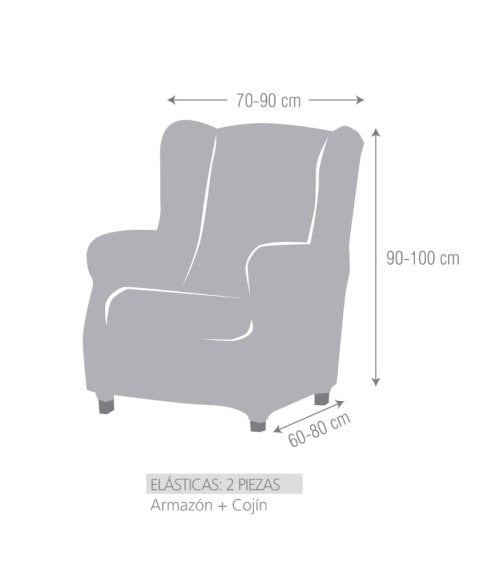 La Funda de Sofá Orejero Aquiles es perfecta para proteger tu sofá con estilo. Sus medidas son 90 x 80 x 100 cm, ideal para la mayoría de los sofás orejeros. Compuesta por 50% poliéster, 45% algodón y 5% elastómero, ofrece una textura suave y resistente. Su mantenimiento es sencillo: se puede lavar a 30ºC, permite limpieza en seco y secado a baja temperatura. No usar lejía ni planchar.