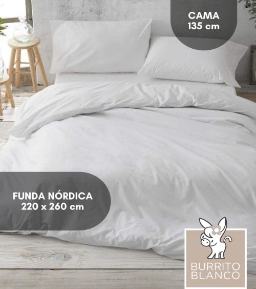 Descubre la Funda Nórdica 180 Hilos Lisa de 100% Algodón Percal, una opción ideal para quienes buscan combinar estilo y comodidad en su dormitorio. Fabricada por Burrito Blanco, esta funda nórdica está diseñada para ofrecerte un descanso reparador, gracias a su tejido de alta calidad.