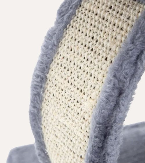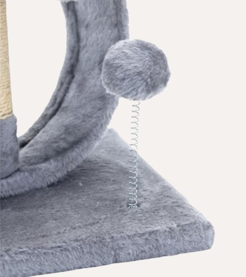Estructura y Diseño: Con una base cuadrada que proporciona estabilidad, este rascador está cubierto con un suave tejido gris que se adapta a cualquier decoración. El poste central, envuelto en sisal natural, fomenta el cuidado saludable de las garras de tu gato mientras evita que rasquen tus muebles.