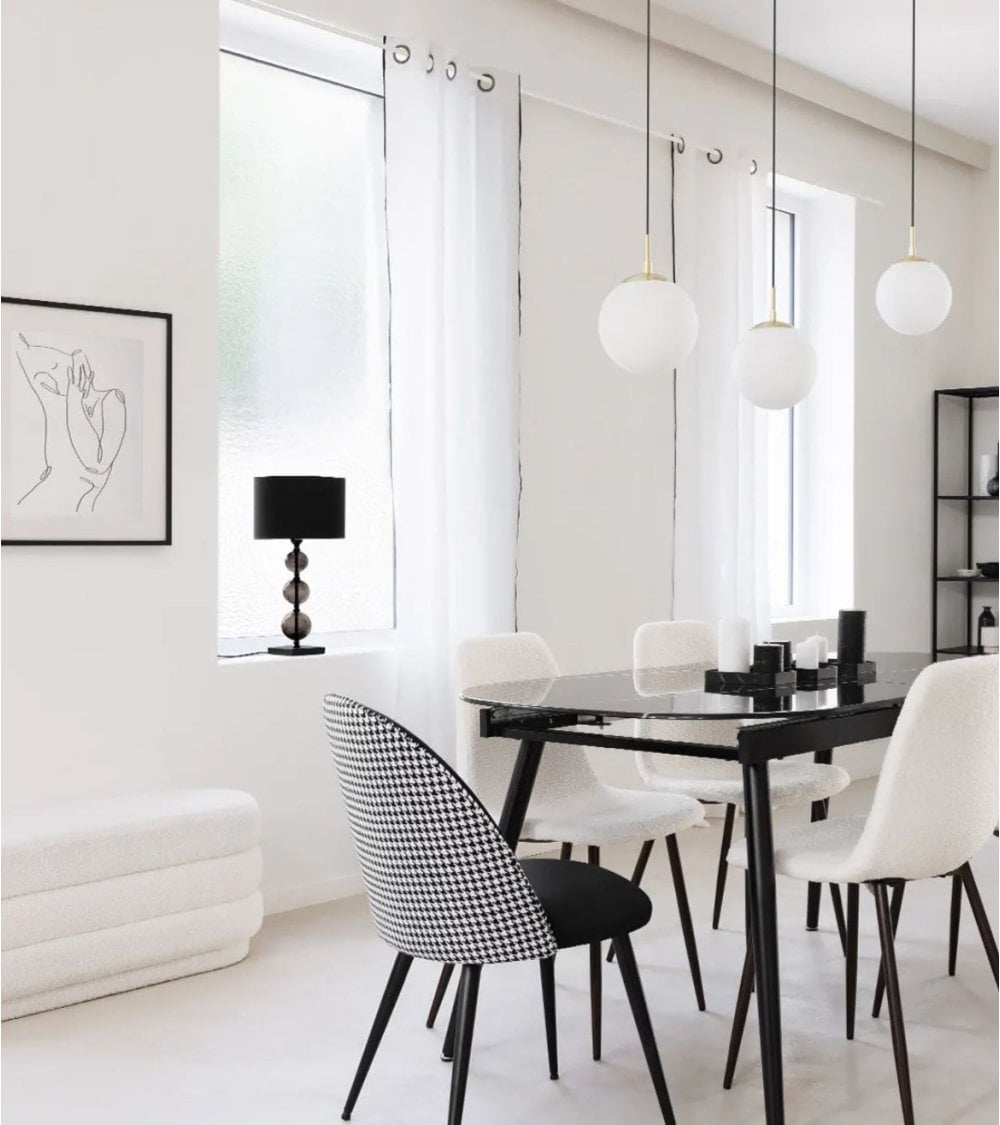 La Lámpara de Mesa Alma de Cristal destaca por su estructura única compuesta por tres esferas verticales hechas en vidrio translúcido, que aportan un efecto visual atractivo y delicado. Su base cuadrada en acero negro mate garantiza estabilidad y resistencia, mientras que la pantalla cilíndrica negra con interior blanco ofrece una iluminación suave y agradable, ideal para crear ambientes cálidos.