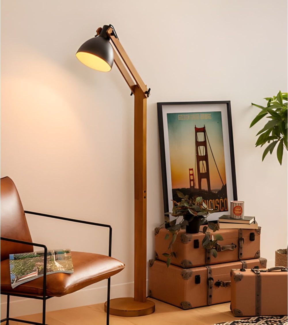 Lámpara de Pie Cuba con Arco de Madera de Pino