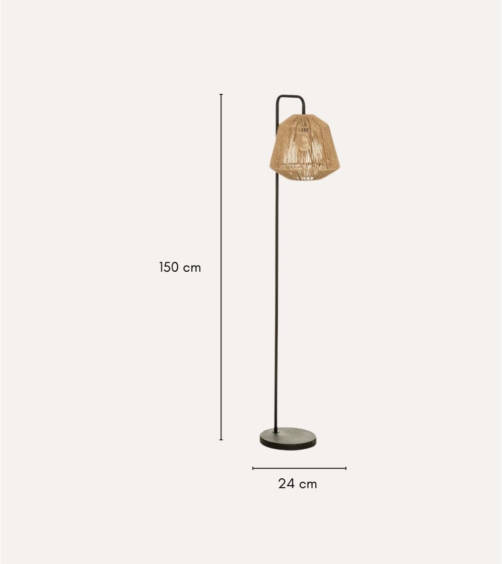Lámpara de Pie Jily de Metal y Papel Trenzado no solo aporta iluminación sino también un toque decorativo único a tu hogar. Su versatilidad permite integrarla en diferentes ambientes manteniendo siempre un estilo moderno y natural.