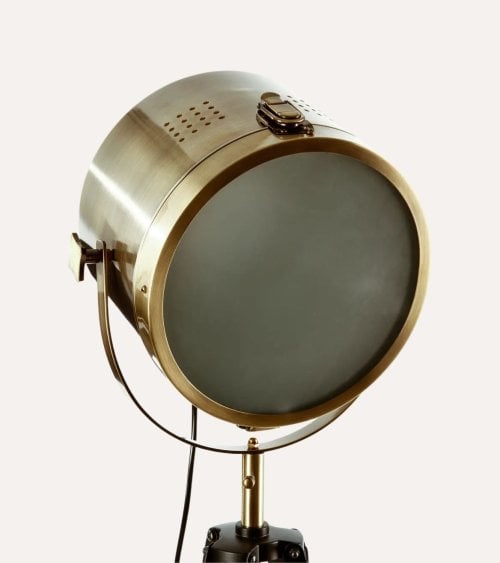 La estructura del Lámpara de Pie Ébor se caracteriza por un robusto diseño en trípode, compuesto por tres patas de madera con un acabado natural que aporta un toque rústico. La combinación con el cabezal metálico en acero, terminado en un elegante tono dorado o bronce, crea un contraste visual atractivo que se adapta a diversos estilos decorativos.