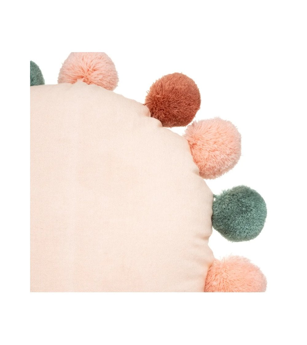 El cojín redondo con pompones de Atmosphera conquistará el corazón de todos los peques, sobre todo si les encantan las Princesas. Este cojín infantil es suave y colorido, gracias a sus pompones de diferentes colores. Aporta un toque diferente a la decoración de la sala de juegos o habitación infantil de tu peque. Llama la atención su frase en color dorado.