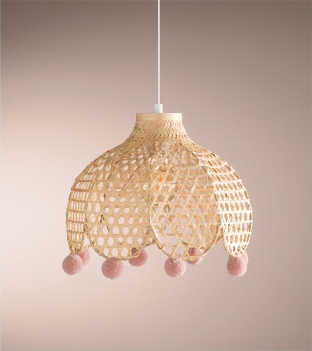 Lámpara de Techo Infantil de Bambú con Pompones