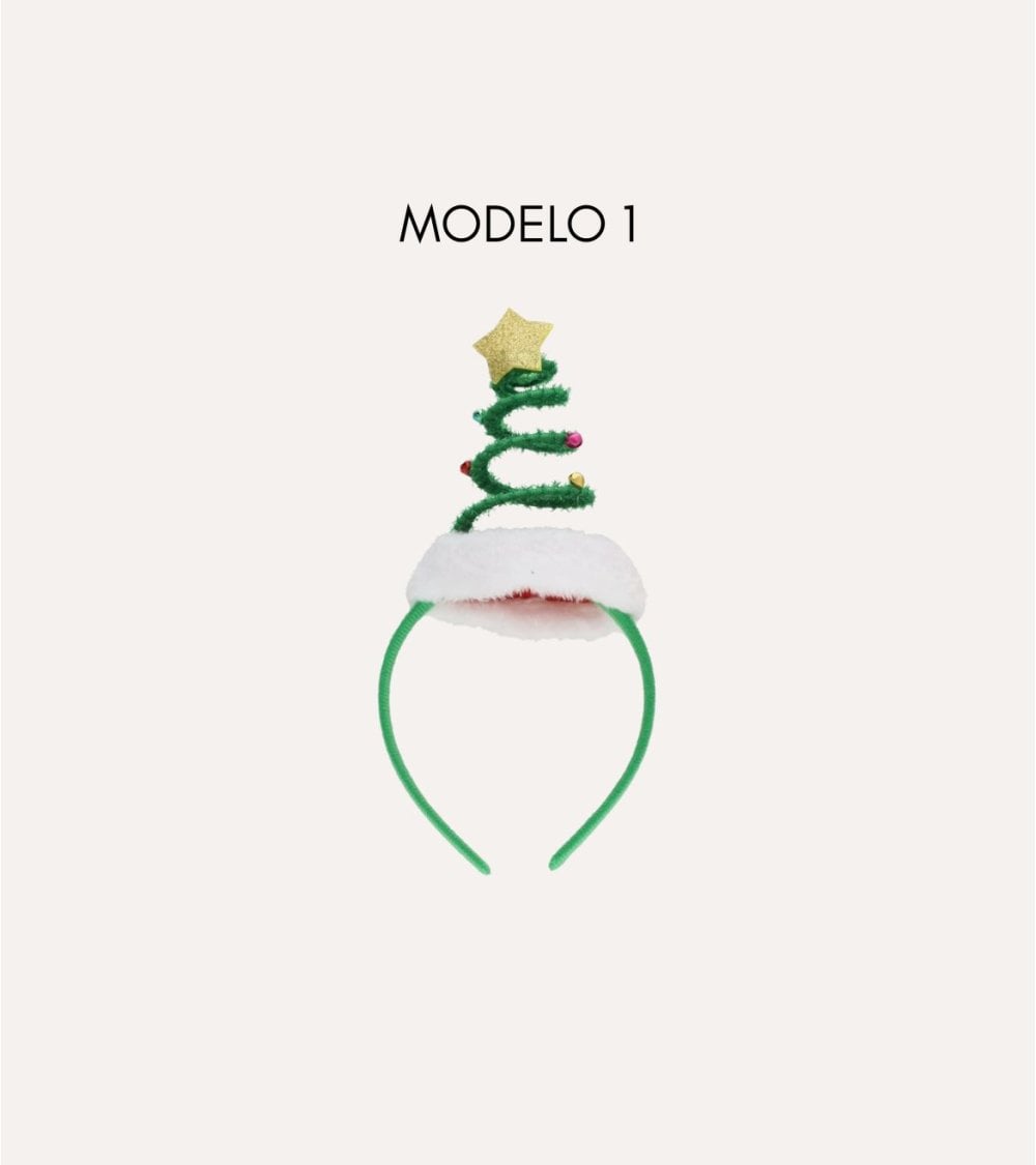 Disponible en dos variantes de color vibrante, verde y rojo, cada diadema cuenta con un árbol de Navidad hecho a mano utilizando espirales de limpiapipas que se elevan desde la base hasta coronarse con una brillante estrella dorada. La versión verde incluye además pequeños abalorios multicolores que aportan un detalle juguetón y festivo, mientras que la roja mantiene un diseño más clásico pero igual de llamativo.