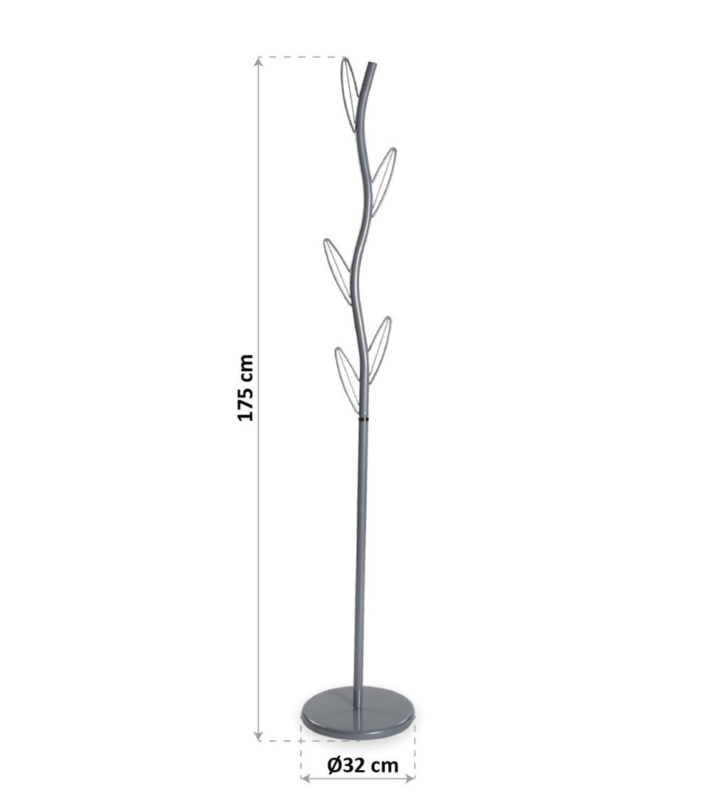 Este perchero en forma de árbol presenta un diseño de corte romántico en el que cobran especial protagonismo los ganchos en forma de hoja. Este artículo es ideal para crear en el recibidor de tu hogar un ambiente de estilo contemporáneo y modernista que se ve reforzado por el material en el que está elaborado. Fabricado en metal, esta pieza se convierte en un artículo altamente resistente, que puede soportar hasta los abrigos de invierno más pesados. Además, su base en forma circular proporciona una estabilidad que contribuye a que el conjunto gane en resistencia, por lo que podrás colgar las piezas de ropa sin temor a que el perchero se desestabilice o se caiga.