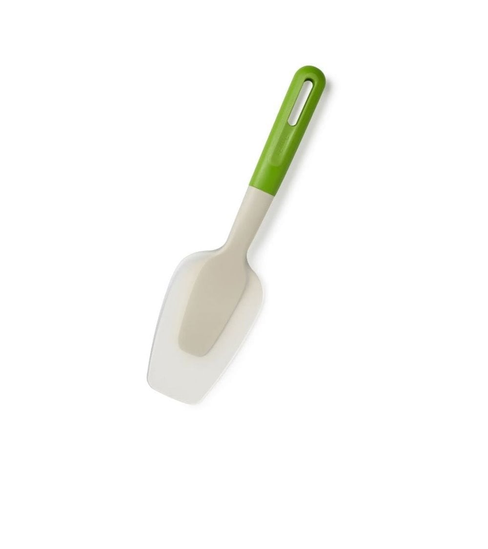 ¿Quieres una espátula todoterreno? En Ali Hogar tenemos el artículo que estás buscando, se trata de esta espátula de la marca Lékúe, fabricada en 100% silicona de platino. Gracias al gran tamaño de la espátula podrás girar creps y tortillas de un solo gesto. Con su ligera inclinación del mango permite que la pala entre y se adapte a la forma de la sartén. No dañarás las sartenes al rebañar y con su mango ergonómico se adapta a los movimientos de la mano. Gran agujero en el mango para poder colgarlo. El cuerpo de la espátula está hecho de Nylon para una mayor resistencia a las altas temperaturas. Lékúe una marca que nunca defrauda.