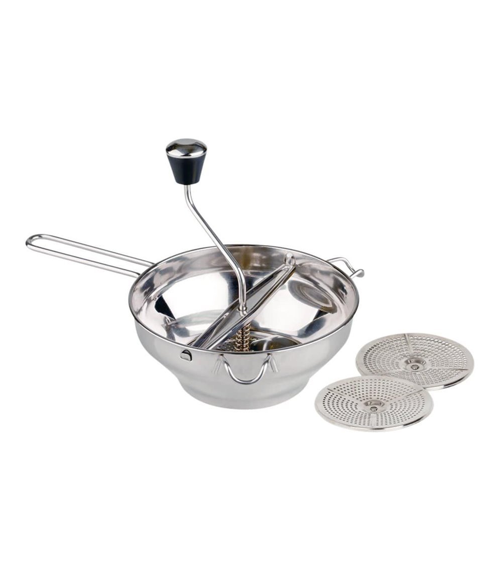 Este pasapurés con dos discos de acero inoxidable es un utensilio de cocina esencial. Su diseño robusto y duradero garantiza un uso prolongado. Los dos discos permiten una variedad de texturas, desde purés suaves hasta alimentos más gruesos. Fácil de limpiar y resistente a la corrosión, este pasapurés es una adición valiosa a cualquier cocina.