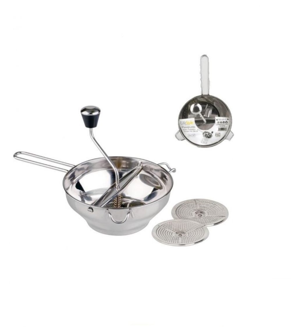 El Pasapurés con Dos Discos de Acero Inoxidable es un utensilio de cocina imprescindible para cualquier amante de la cocina. Este pasapurés de alta calidad está diseñado para ayudarte a preparar purés, sopas y salsas con una textura suave y uniforme. Fabricado en acero inoxidable, este pasapurés es resistente y duradero, garantizando un rendimiento excepcional durante años.