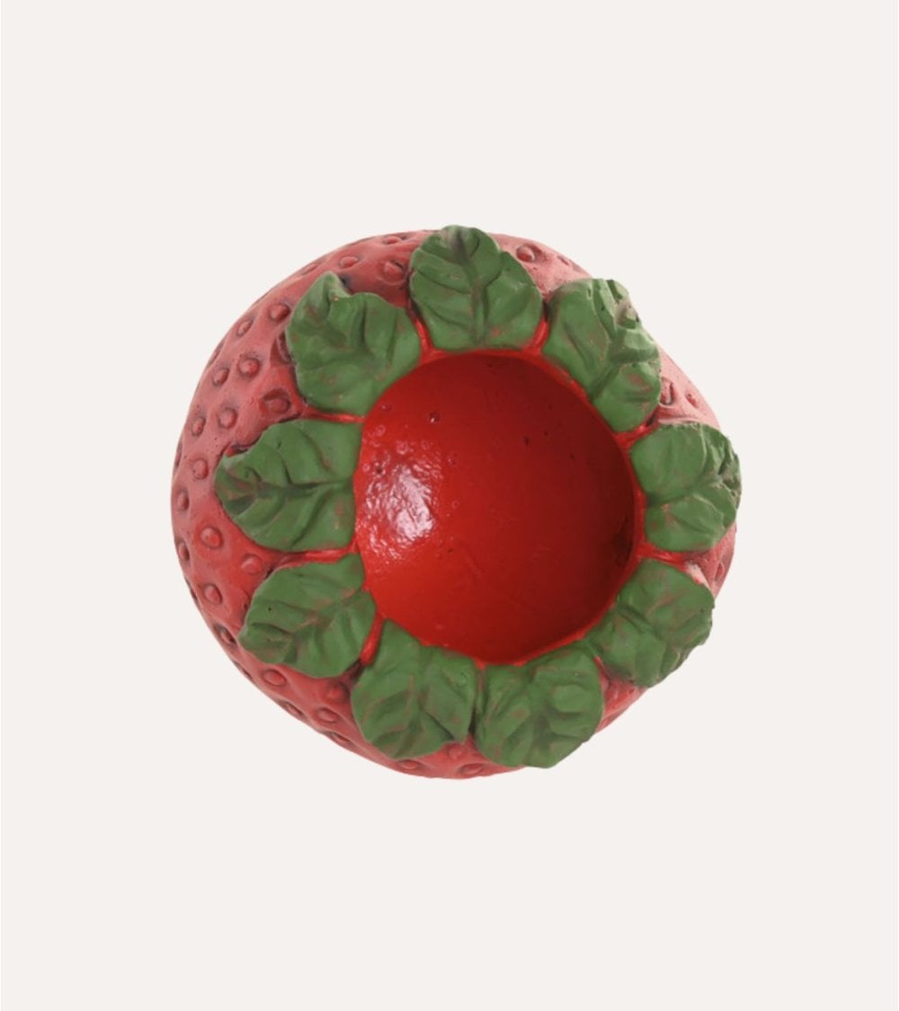 - Apariencia realista: diseño inspirado en una fresa con textura que simula las semillas y hojas verdes vibrantes.