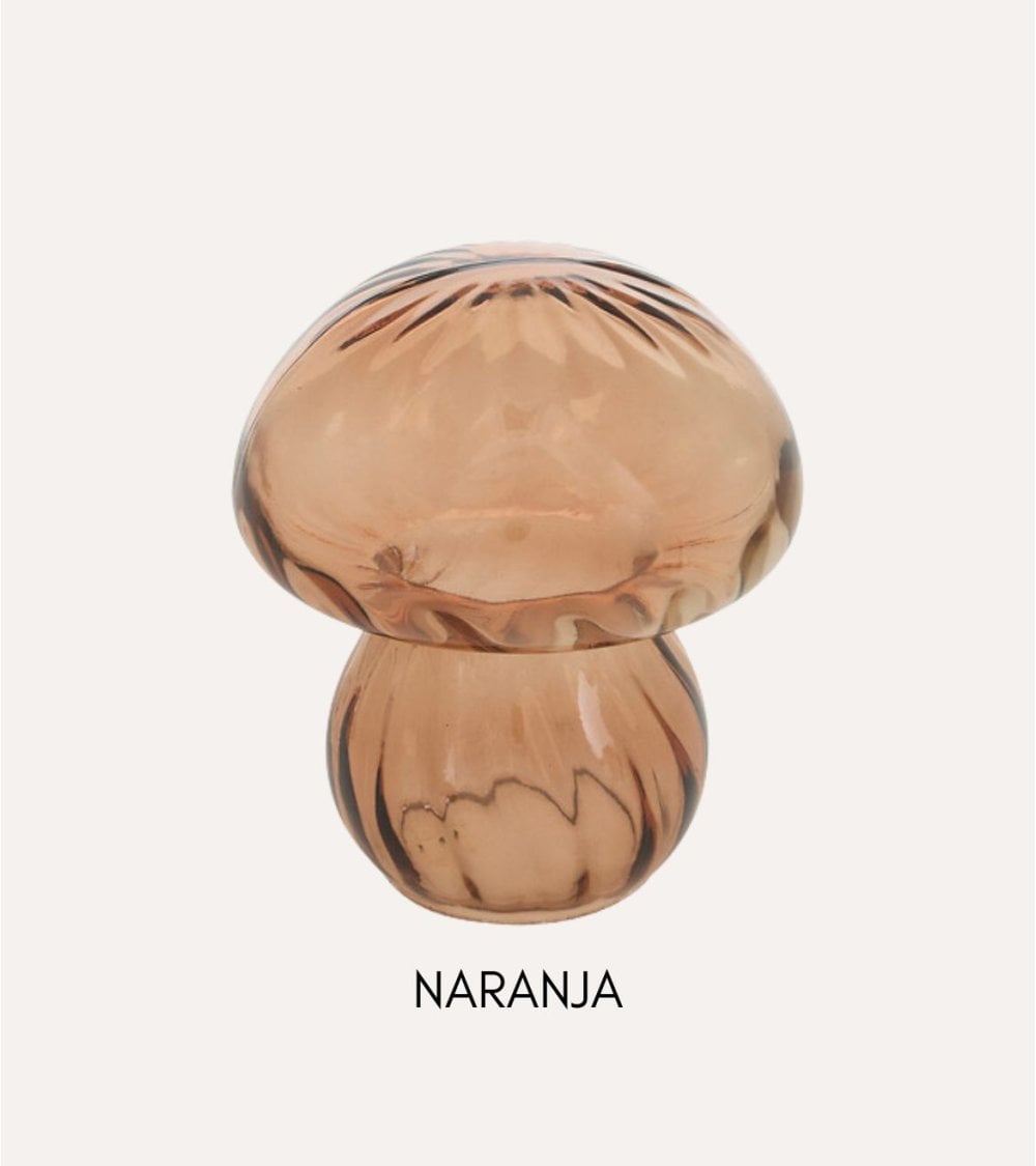 Elaborada en vidrio de alta calidad, esta seta destaca por su acabado brillante y sus detalles cuidadosamente trabajados que imitan las texturas naturales del hongo. Su diseño único, con variaciones en tonos otoñales como el marrón, marfil y burdeos, aporta un aire orgánico y acogedor ideal para complementar estilos modernos, bohemios o rústicos.