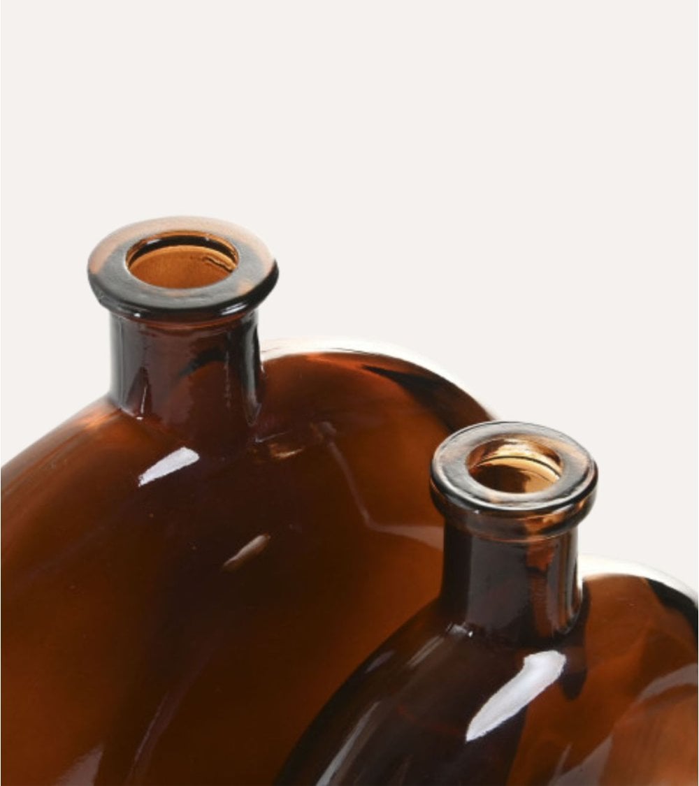 Disponible en dos tamaños, Tamaño Pequeño y Tamaño Grande, este jarrón se adapta perfectamente a diferentes ambientes, desde salones hasta oficinas o dormitorios. Su forma circular plana le confiere un aspecto único y contemporáneo, mientras que el cristal tintado ofrece una transparencia sutil que realza la belleza de las flores o elementos decorativos que decidas colocar.