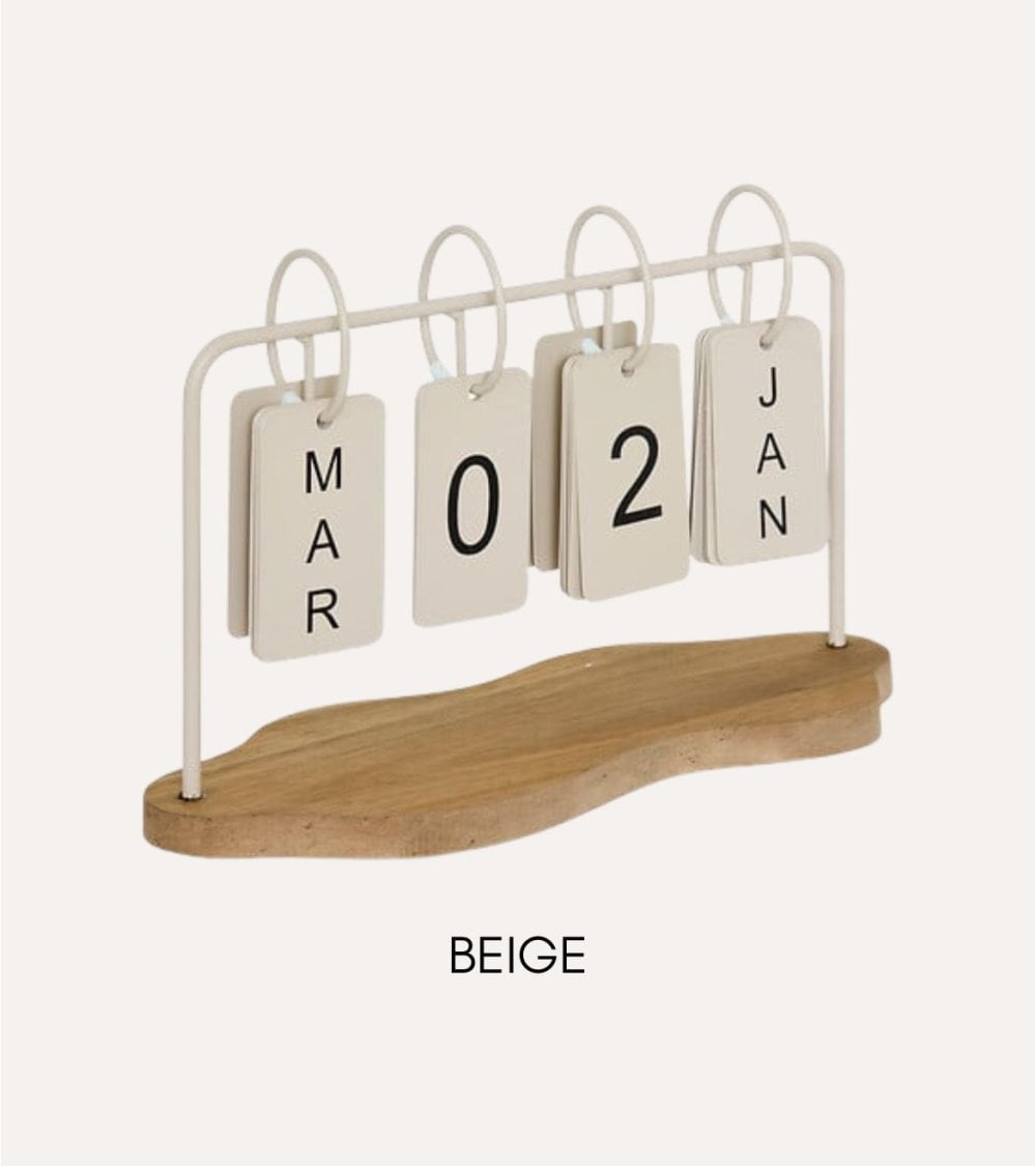 En ALI Hogar, ofrecemos el Calendario Decorativo Fred de Acero y MDF, una pieza de diseño contemporáneo que aporta estilo y funcionalidad a cualquier espacio. Este calendario perpetuo, fabricado con materiales de alta calidad, destaca por su estructura robusta en acero y detalles en MDF, garantizando durabilidad y un acabado sofisticado. Su diseño minimalista se adapta a ambientes modernos, aportando un toque natural. Permite cambiar manualmente el día y el mes con tarjetas giratorias sujetas con anillas metálicas. Su tamaño compacto es perfecto para colocar en escritorios o estanterías. Disponible en verde suave o beige cálido.