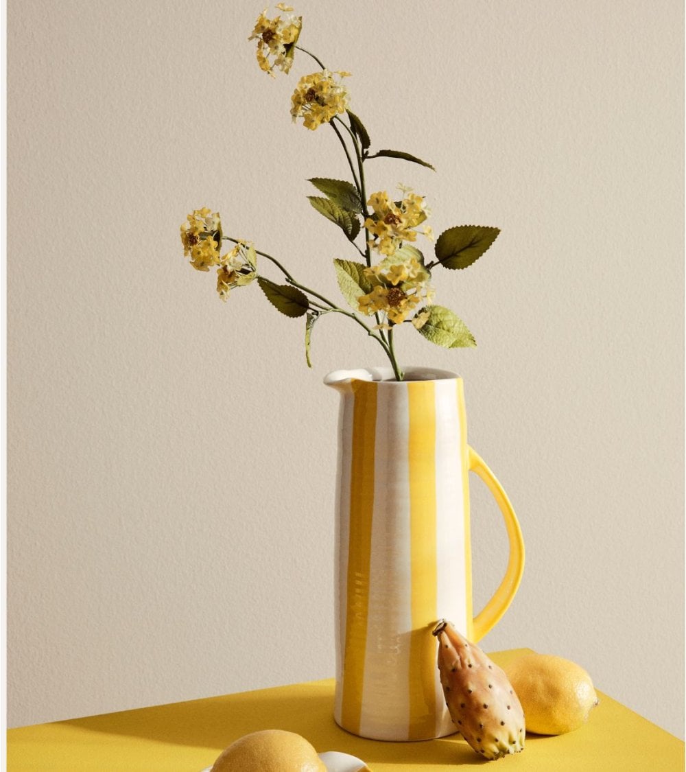 Fabricado en porcelana, este jarrón garantiza resistencia, durabilidad y un acabado suave al tacto, fácil de limpiar y mantener. Su aspecto esmaltado aporta brillo y resalta los tonos y texturas, aportando sensación de limpieza y luminosidad al espacio. Gracias a su diseño tipo jarra con asa, el Jarrón Joly Estilo Jarra de Porcelana añade también un toque cálido y cercano, perfecto para crear ambientes acogedores en tu hogar.