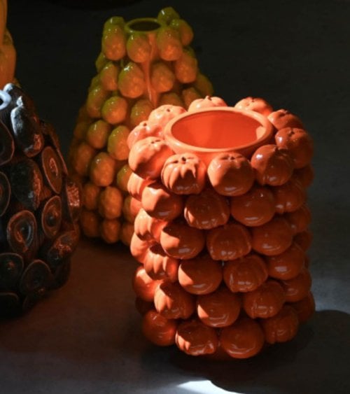 Este jarrón de gres de 30 cm es una pieza decorativa excepcional. Con un diseño inspirado en mandarinas, aporta un toque de frescura y color a cualquier espacio. Su tamaño es ideal para colocar en mesas o estantes. Hecho de cerámica de alta calidad, este jarrón es duradero y fácil de limpiar. Perfecto para flores frescas o secas, o simplemente como una pieza de arte por sí mismo.