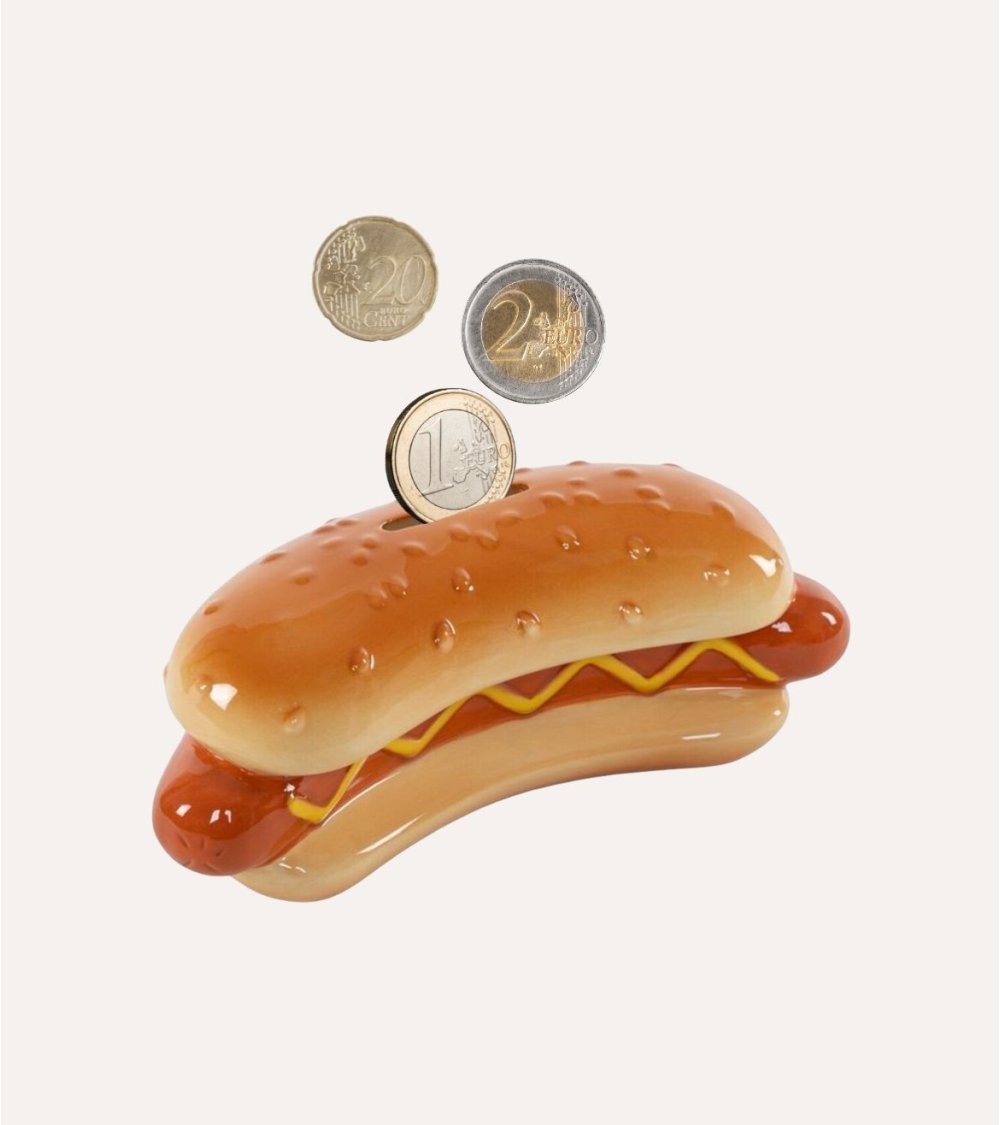 La Hucha de Perrito Caliente de Cerámica es un artículo imprescindible para los amantes de los objetos únicos y divertidos. Esta hucha no solo es un objeto decorativo que añade un toque de humor a cualquier habitación, sino que también es una forma práctica de ahorrar dinero. Con su diseño detallado y realista, esta hucha parece un perrito caliente de verdad, lo que la convierte en un regalo perfecto para los amantes de la comida rápida.