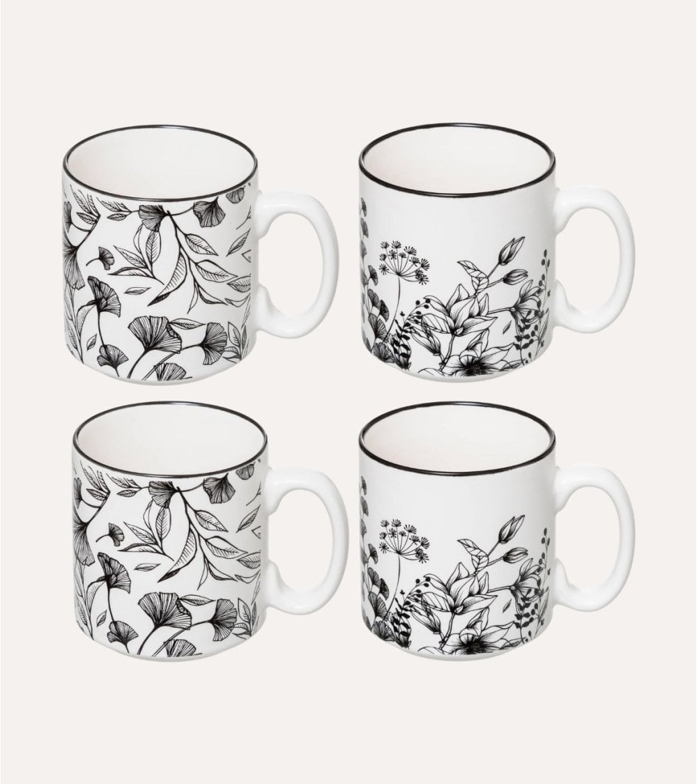 En ALI Hogar, te presentamos este elegante set de 4 tazas altas de porcelana que combina funcionalidad y estilo para tu cocina o espacio de café favorito. Cada taza está cuidadosamente diseñada con un acabado brillante en porcelana blanca, decorada con intrincados motivos florales en negro que aportan un toque sofisticado y natural a tu mesa.
