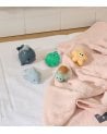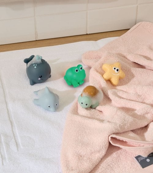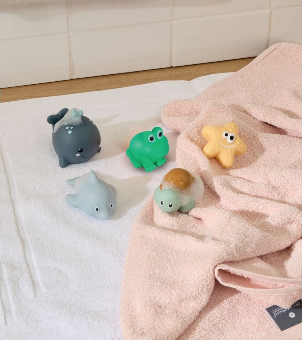 Fabricados en material PVC resistente y flexible, estos juguetes de baño están pensados para soportar el uso diario en agua, ya sea en la bañera, en una mini piscina o en juegos de verano. Su textura suave y bordes sin aristas los convierten en una opción muy adecuada para manos pequeñas, facilitando el agarre y potenciando la motricidad fina durante el juego.