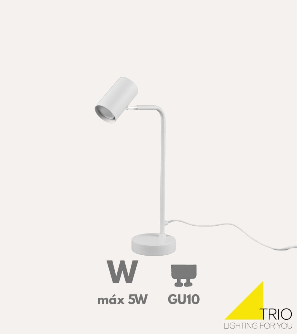 Descubre la lámpara de mesa Marley de metal, una pieza que combina diseño contemporáneo y funcionalidad para transformar cualquier espacio en tu hogar u oficina. Fabricada por Trio Iluminación, esta lámpara destaca por su estructura metálica robusta y elegante, disponible en dos colores sofisticados: blanco y negro. Su acabado mate aporta un toque moderno que se integra fácilmente con estilos decorativos variados, desde minimalistas hasta escandinavos.