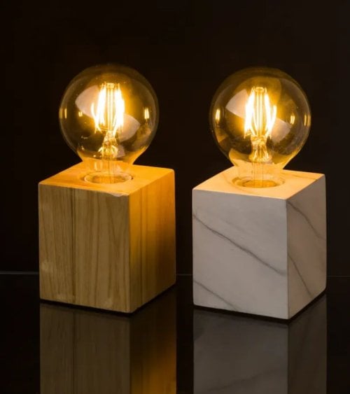 Lámpara de Mesa con Base de Madera, ¿eres más de mármol o de madera natural?
