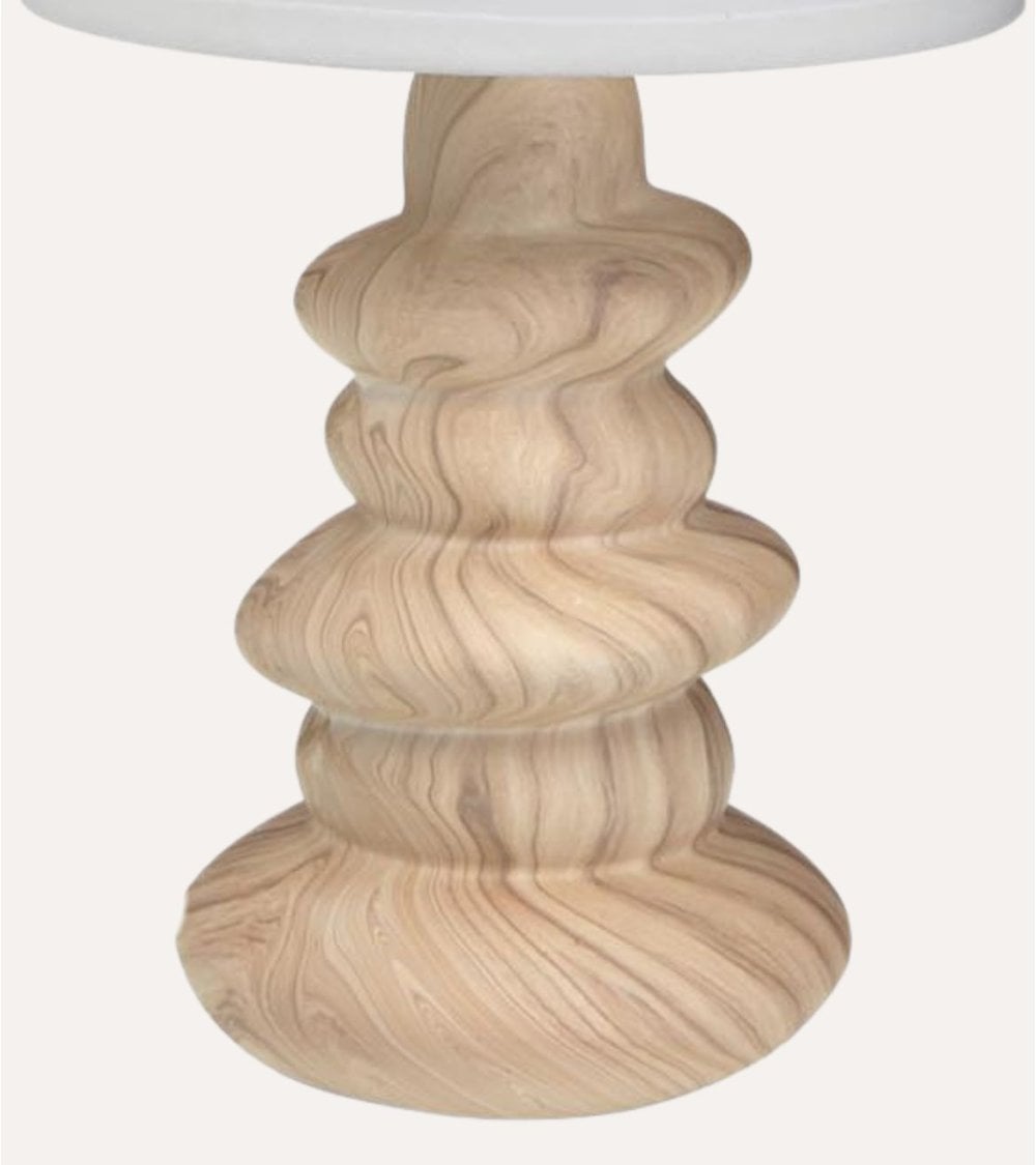 El tamaño compacto pero funcional permite colocarla sobre mesas auxiliares, escritorios o mesitas de noche sin ocupar demasiado espacio. Su estructura robusta garantiza estabilidad mientras aporta un toque artístico gracias a sus líneas limpias y elegantes.