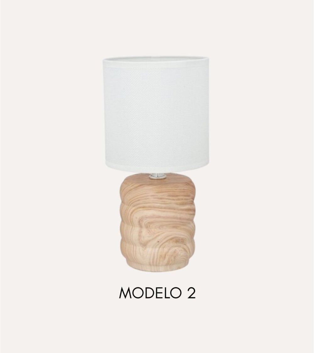 - Pantalla: Cilíndrica en tela blanca que difunde la luz suavemente.