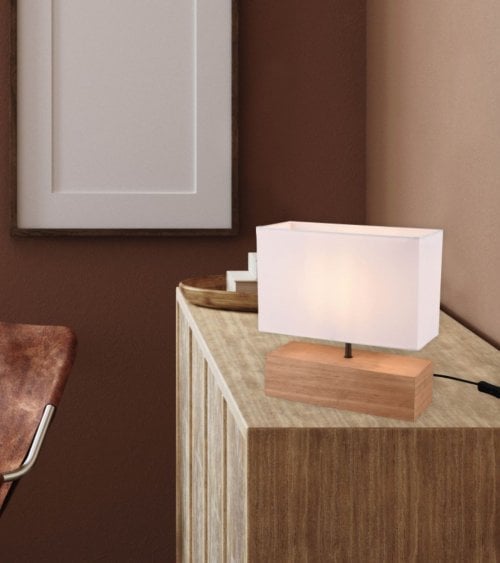Lámpara de Mesa Woody Rectangular E27 60 W con Base de Madera