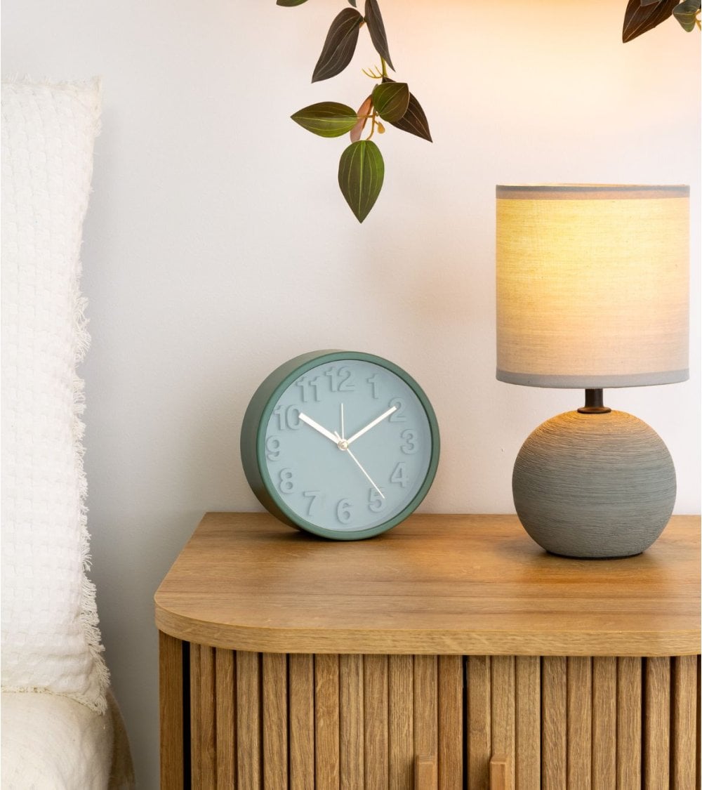 Descubre la Lámpara de Mesa Timeo con Base con Textura, una pieza que combina funcionalidad y estilo en un solo diseño. Con su base esférica texturizada en un suave tono verde, esta lámpara no solo ilumina, sino que también añade un toque de elegancia a cualquier espacio.